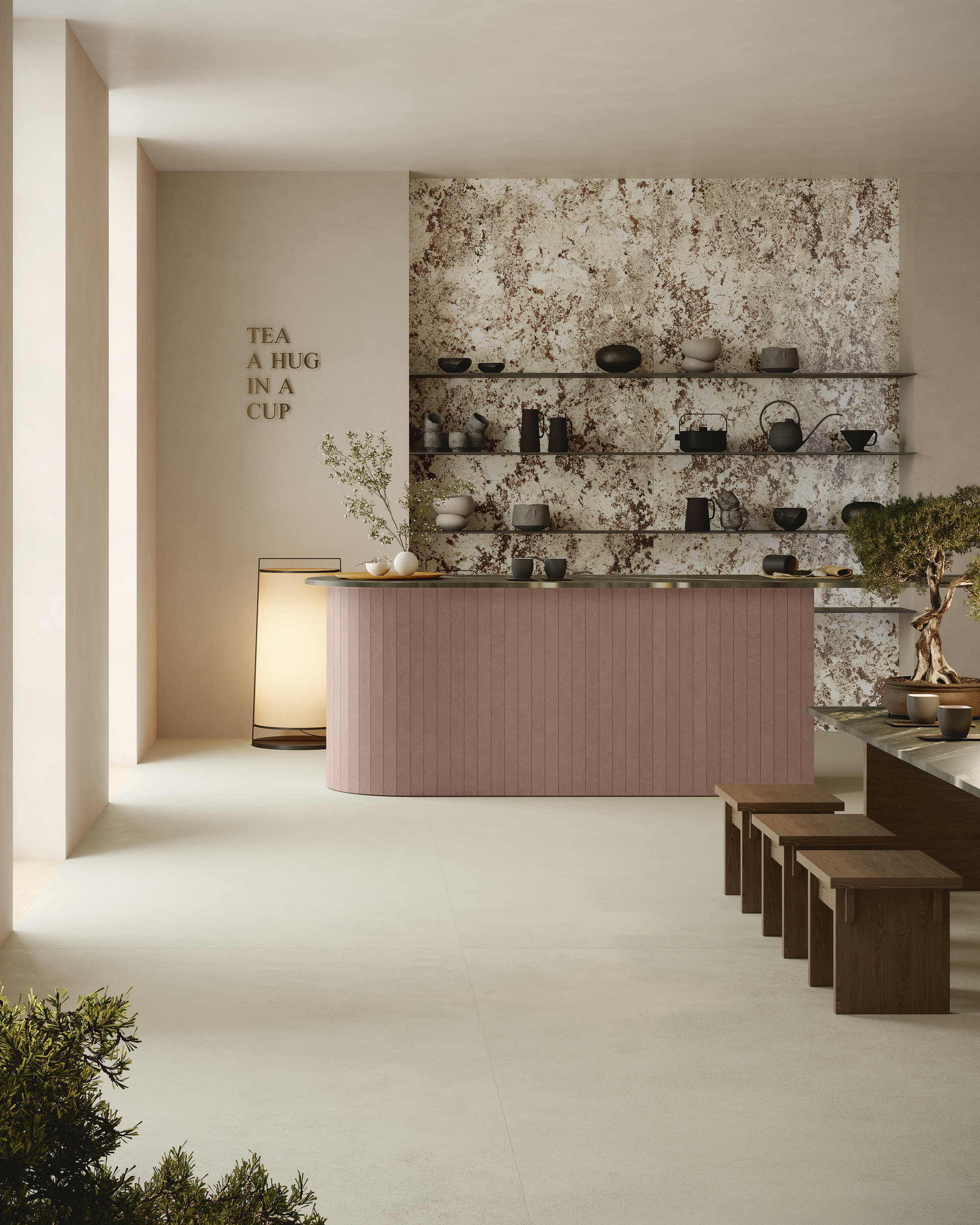 The Marsala Red line in gres porcellanato stands out for its aesthetics, innovation and design applications. Balance, a project of plain coloured surfaces, was born to harmonize decorative elements in composite architectural spaces, defining a moment of s