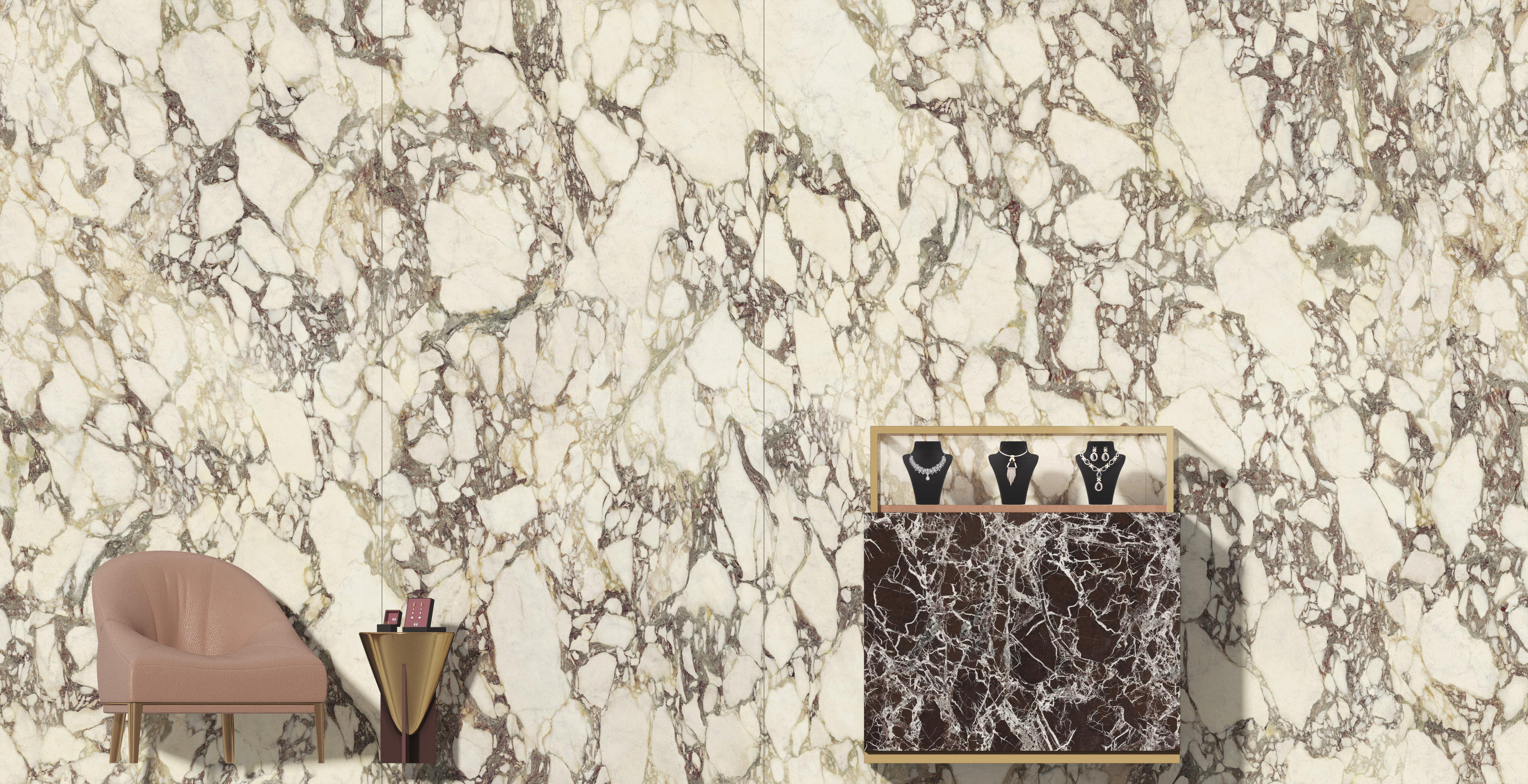 The Breccia Medicea line in lastre ceramiche stands out for its aesthetics, innovation and design applications. MaxFine Marbles. The greatness of matter, the art of lightness. An extraordinary encounter between the natural majesty of marble and the techno