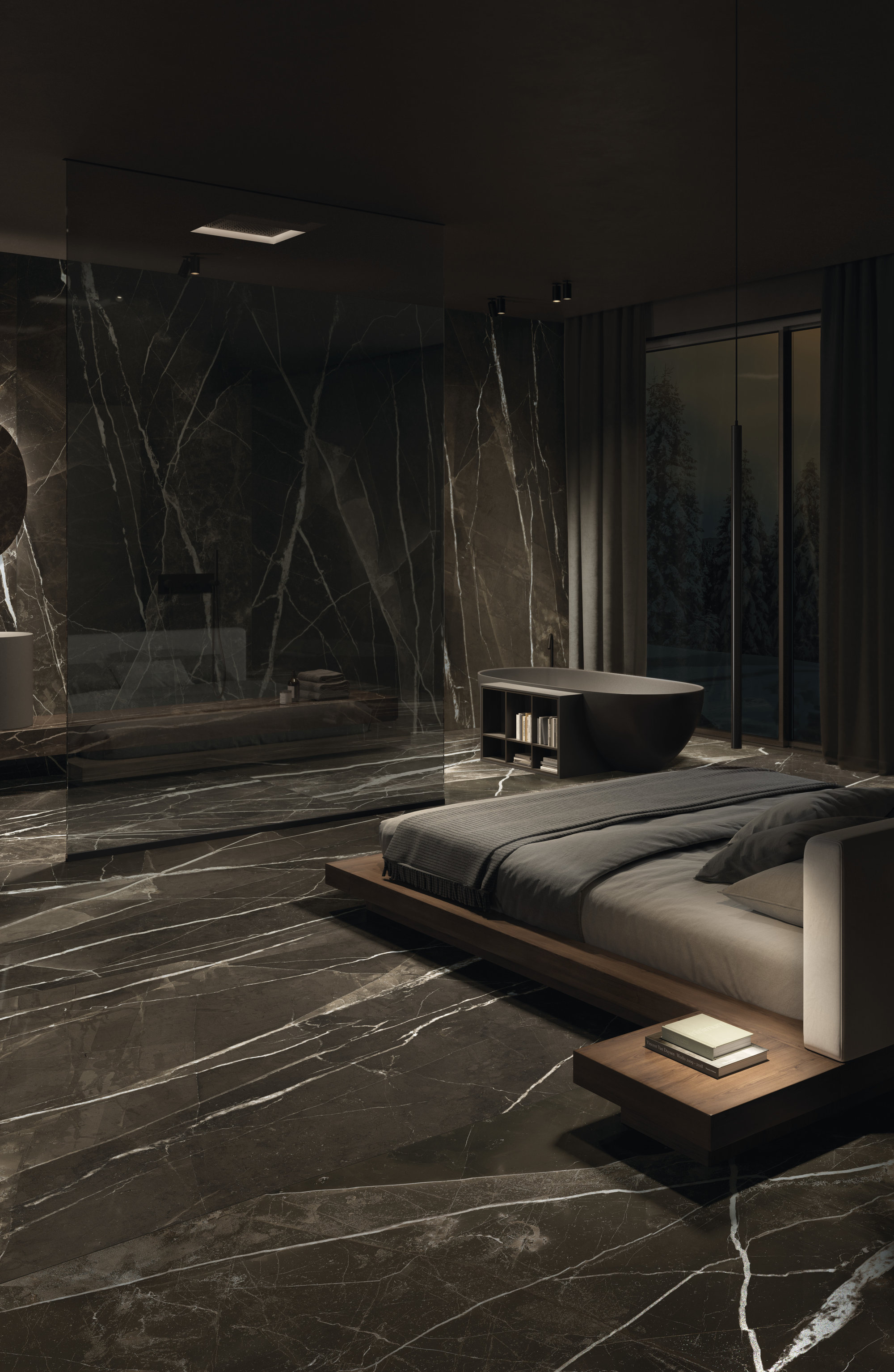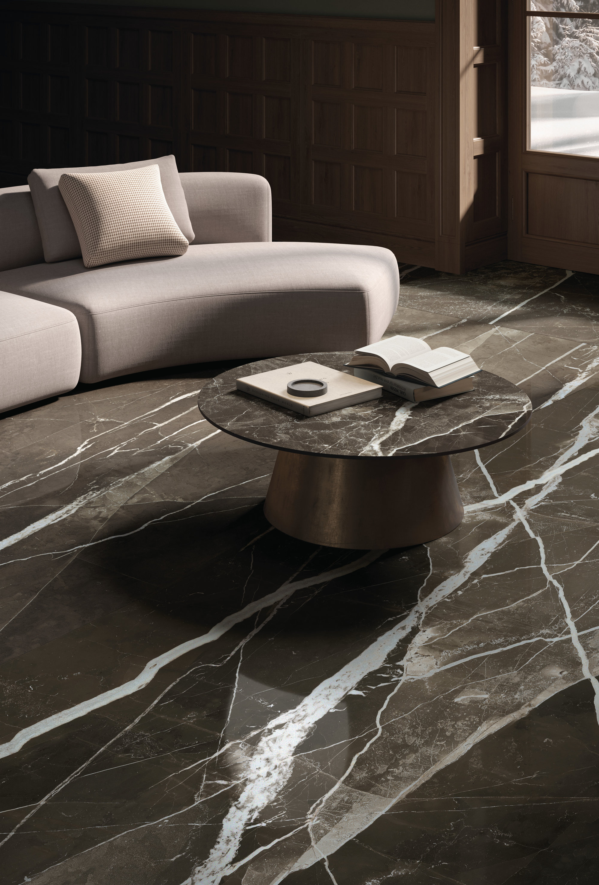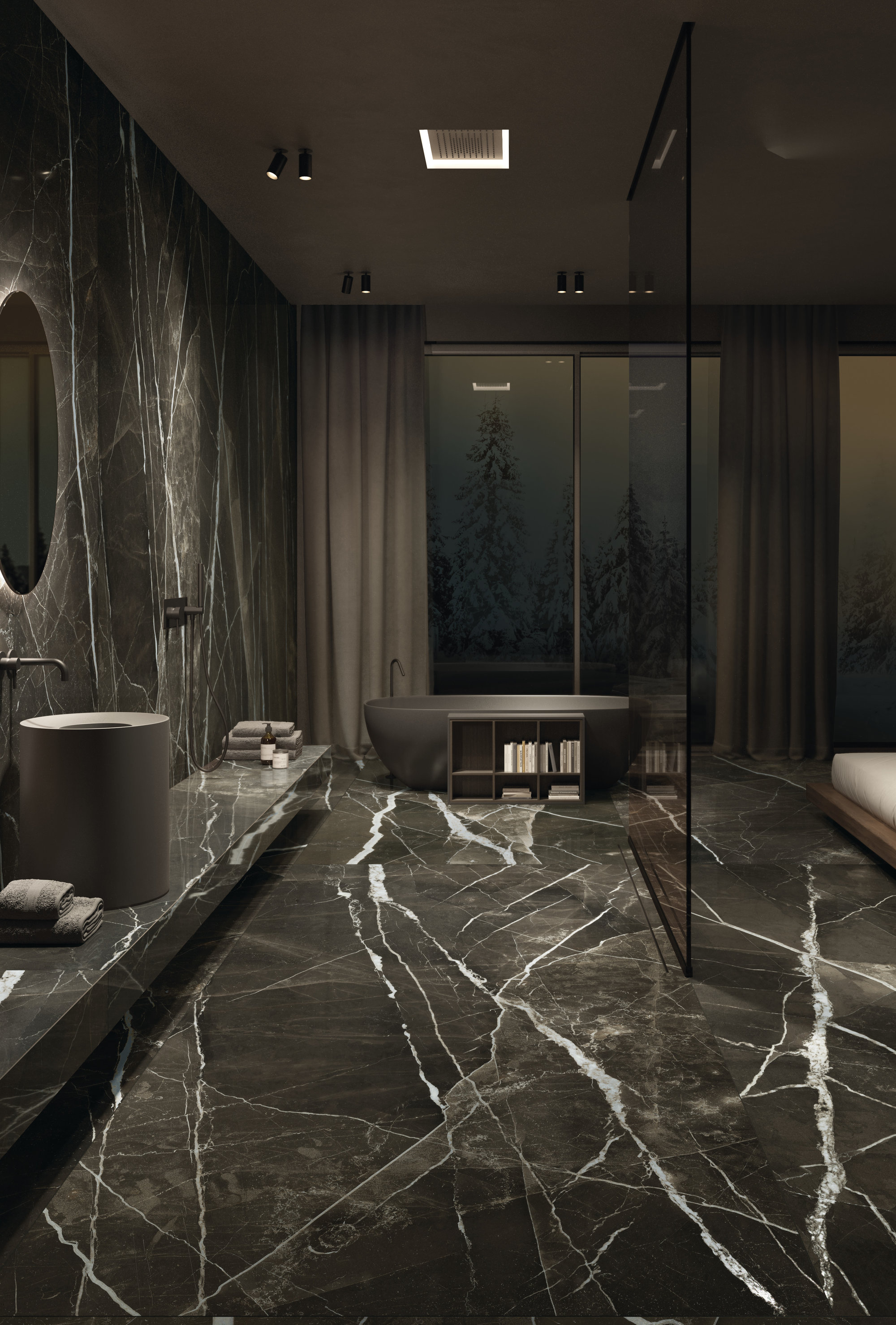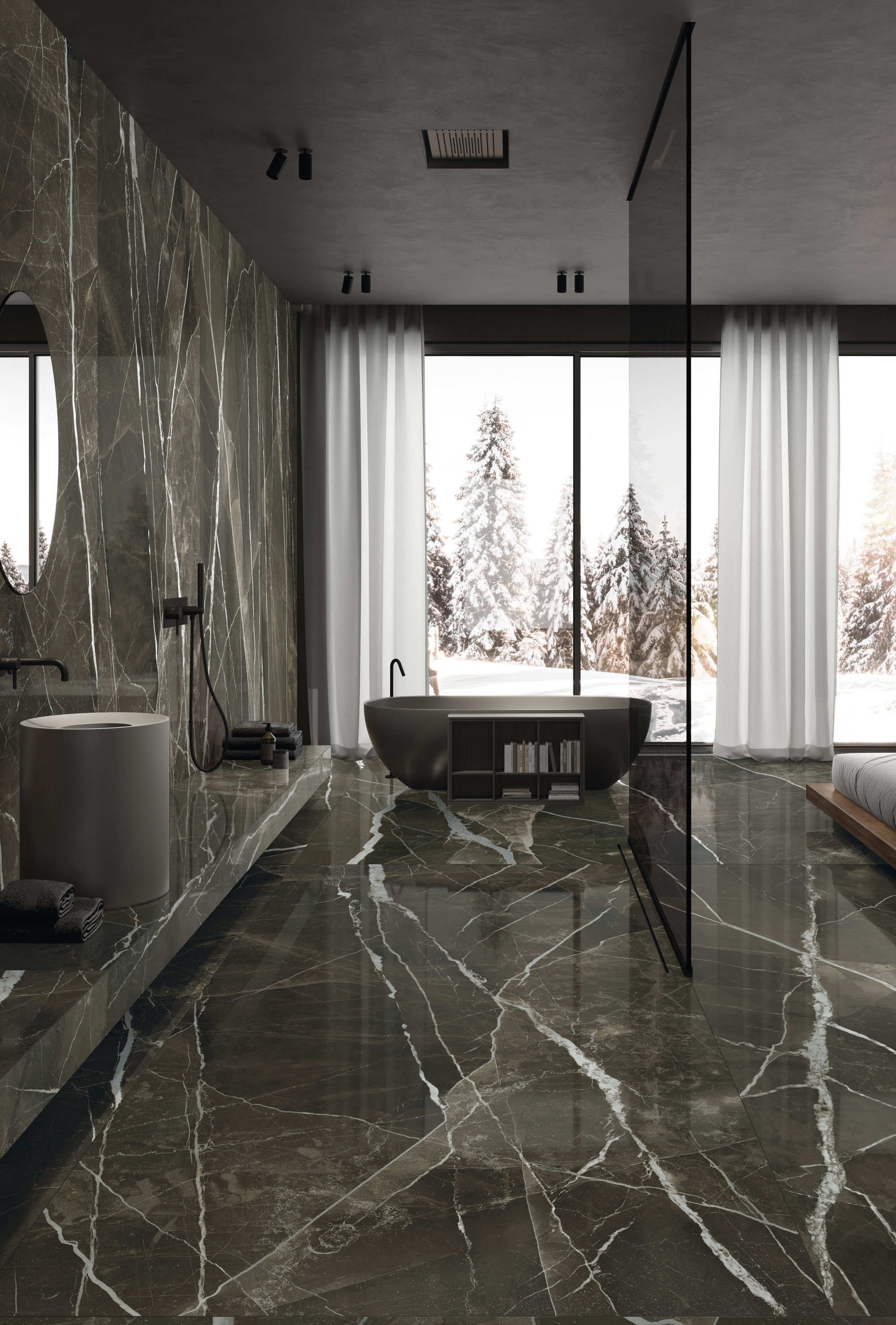The Calacatta Black line in lastre ceramiche stands out for its aesthetics, innovation and design applications. MaxFine Marbles. The greatness of matter, the art of lightness. An extraordinary encounter between the natural majesty of marble and the techno