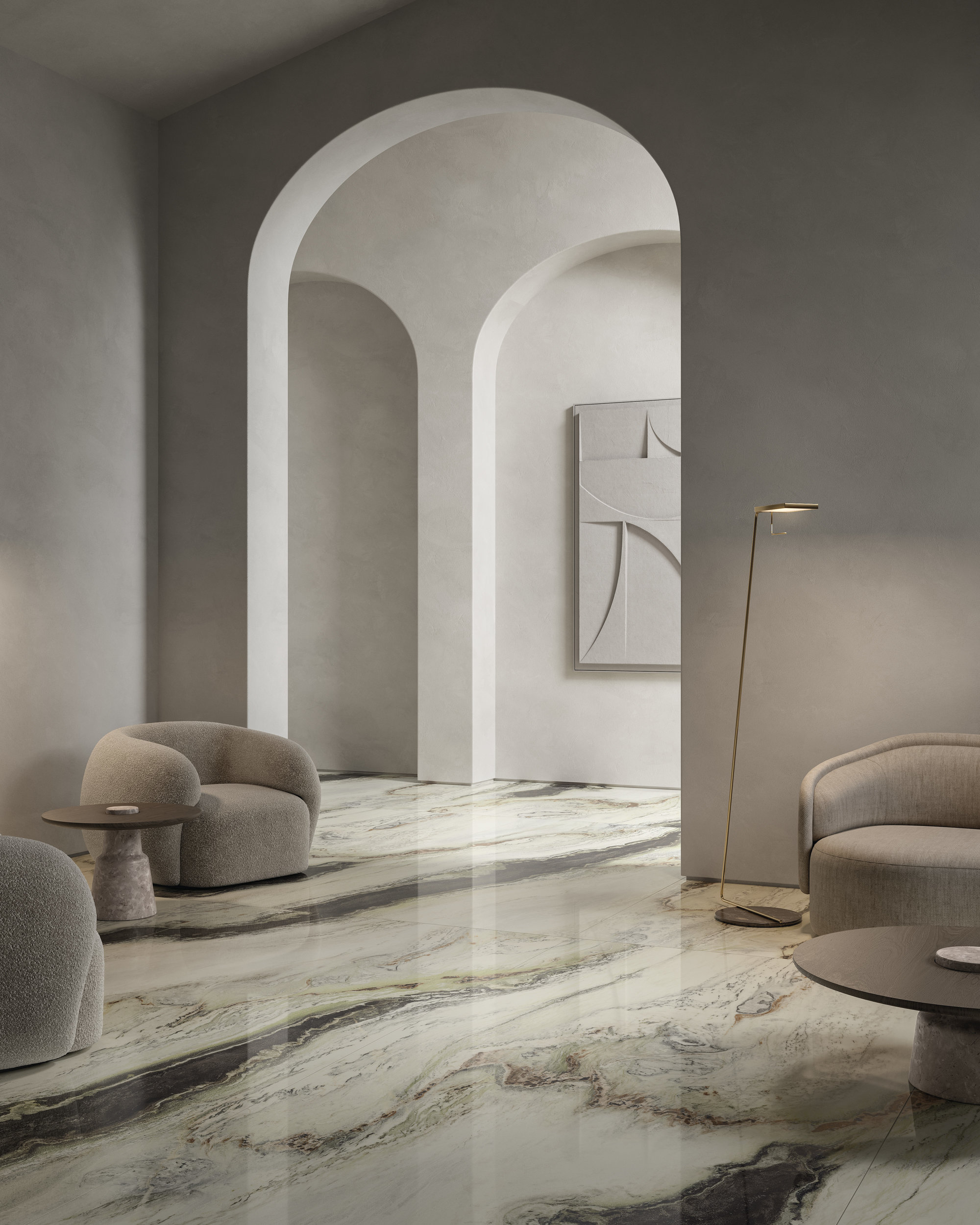 The Panda White line in lastre ceramiche stands out for its aesthetics, innovation and design applications. MaxFine Marbles. The greatness of matter, the art of lightness. An extraordinary encounter between the natural majesty of marble and the technologi