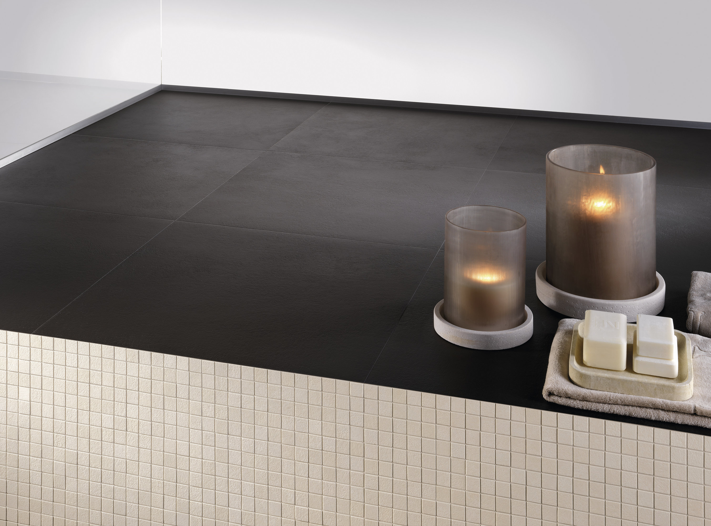 The Black Intensity line in gres porcellanato stands out for its aesthetics, innovation and design applications. Roads, has the aesthetic force of asphalt pavings: hard, essential, radically substantial. Surfaces that evoke urban landscapes, lived paths,