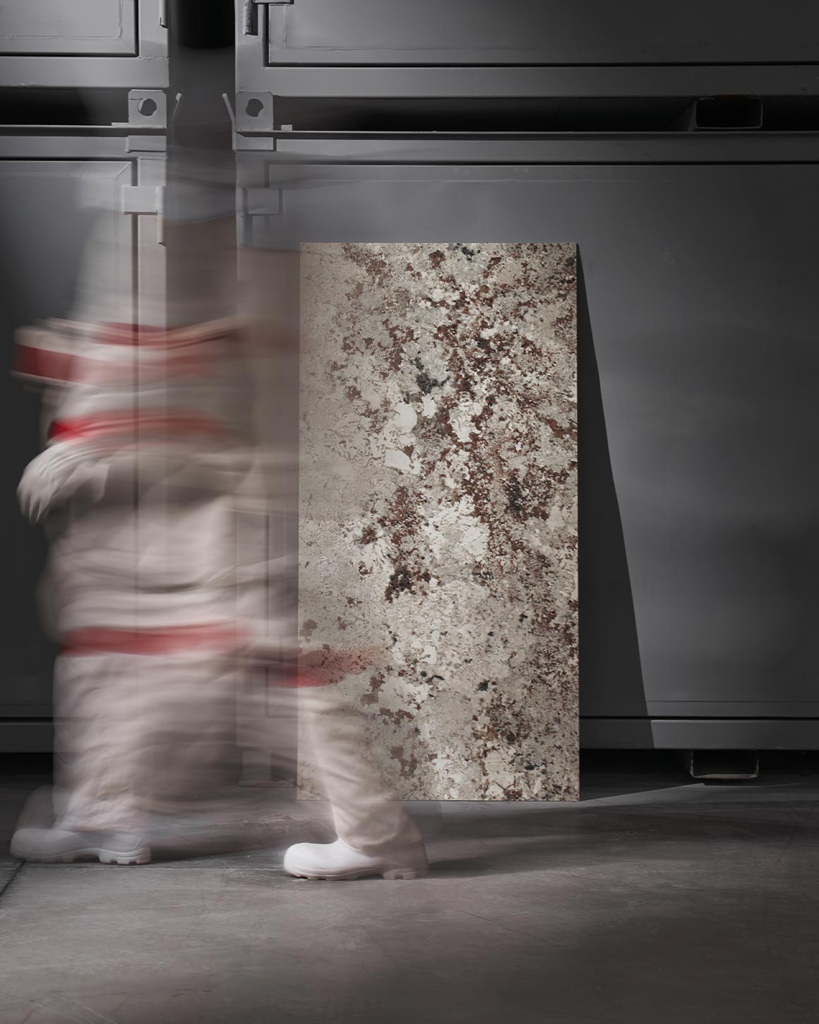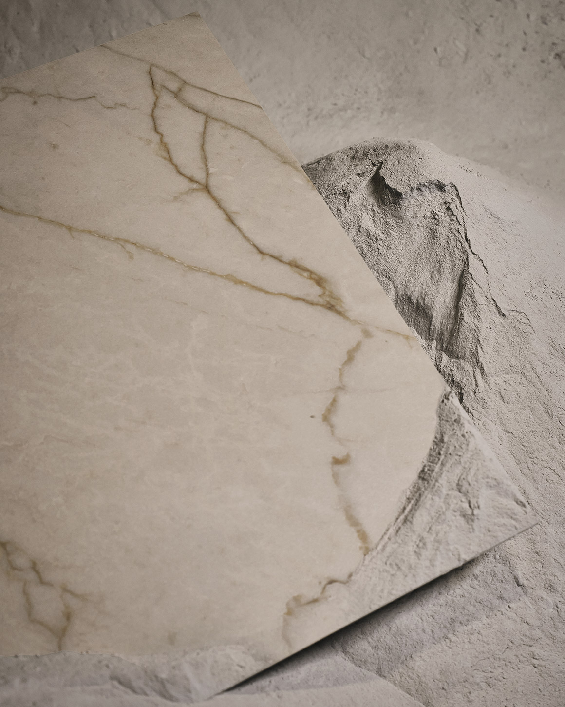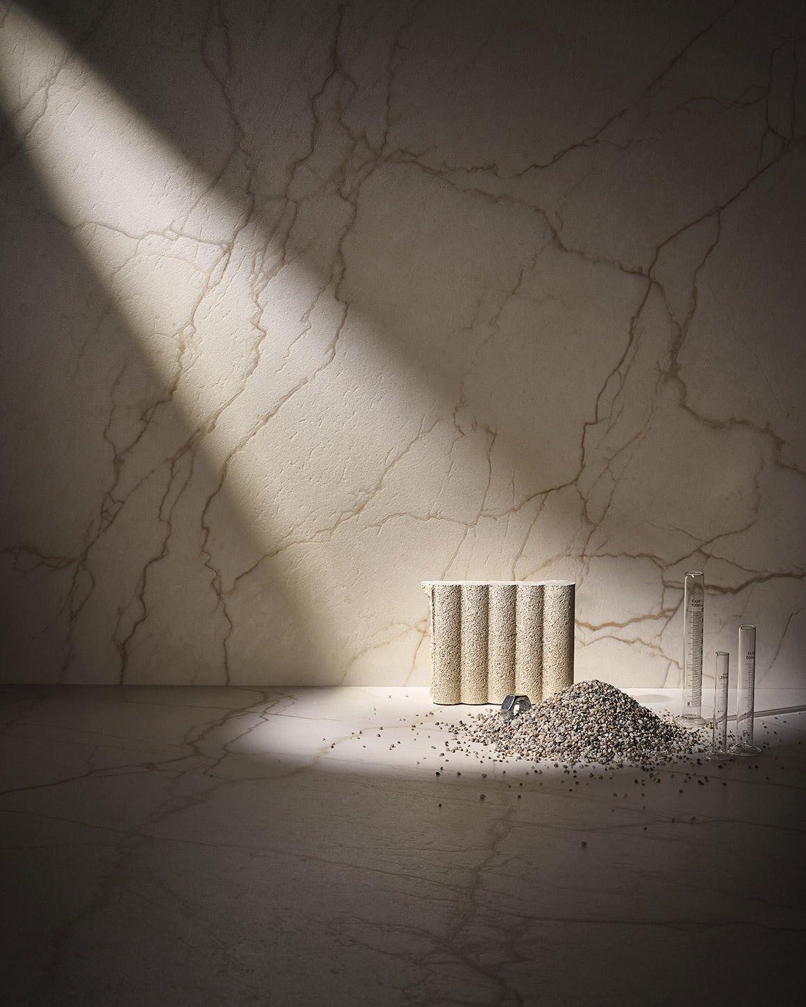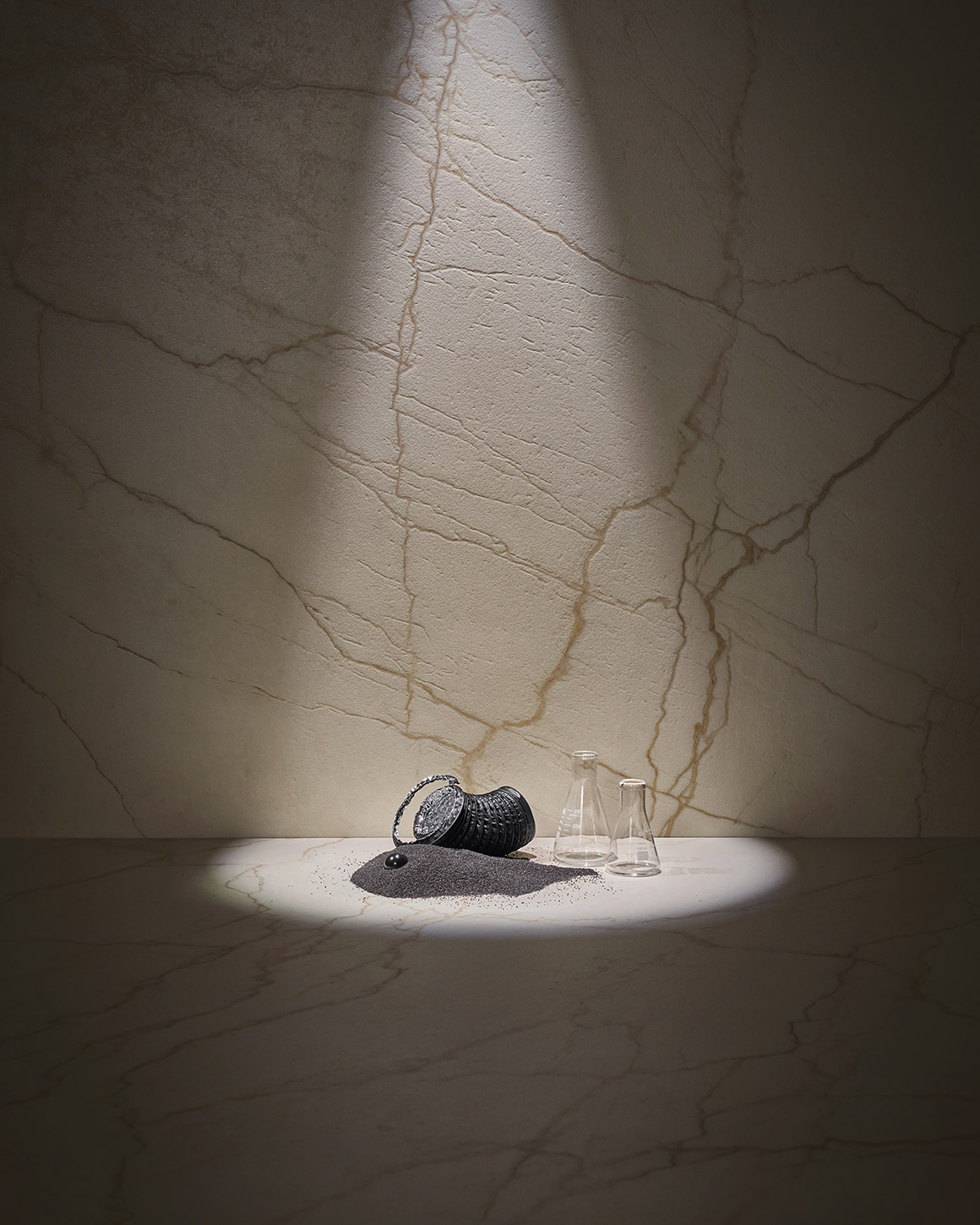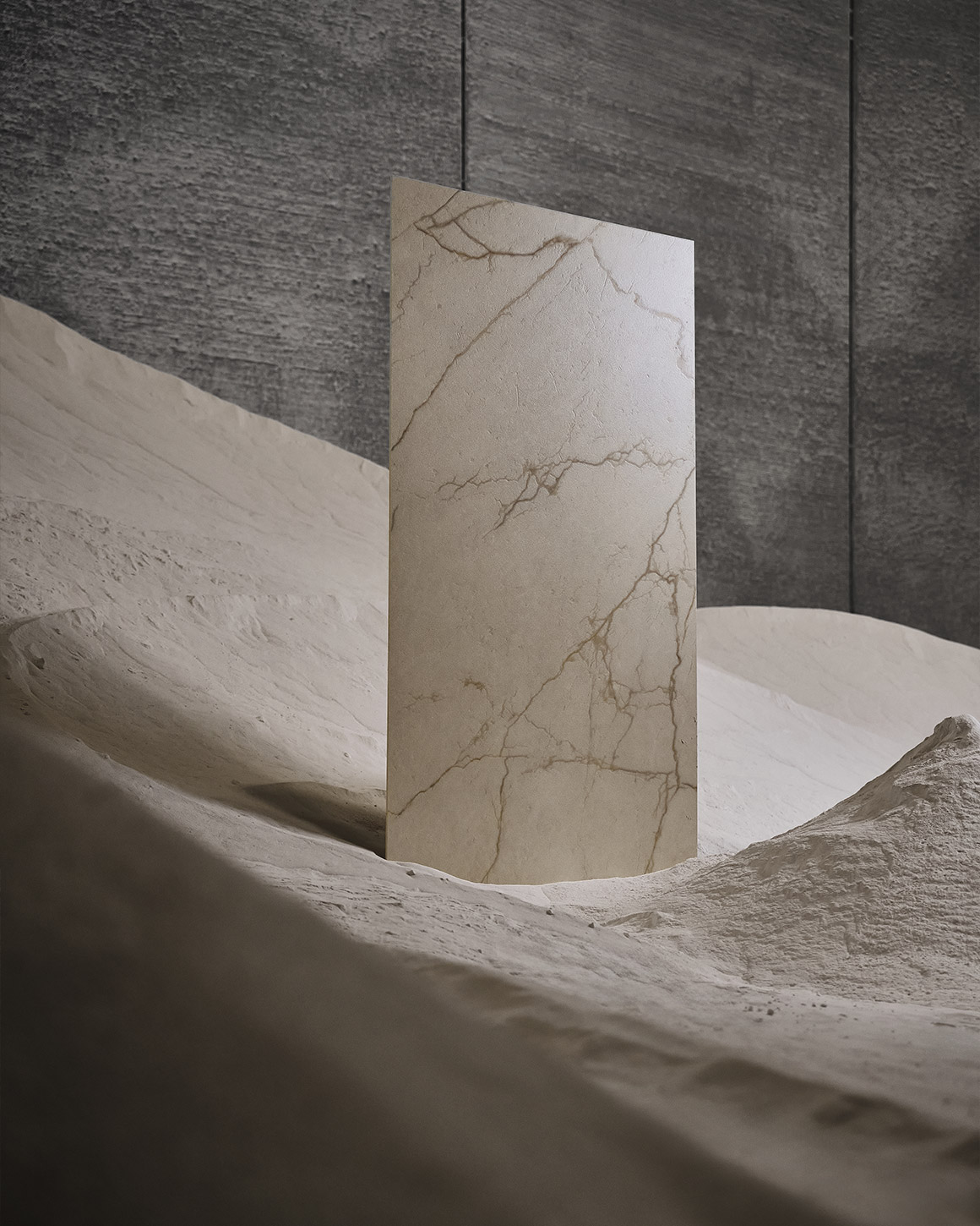 “I stop. Before me lie fragments of material that demand to be understood. This is a time for study, when every insight becomes knowledge. I run my hand over the warm and intense Crema Avorio MaxFine surface, which has a multitude of soft hues, like the traces of ancient light. I look into its properties, paying close attention to what it can teach me. Every detail draws me in more and more. Thus, the material unleashes its true potential.”