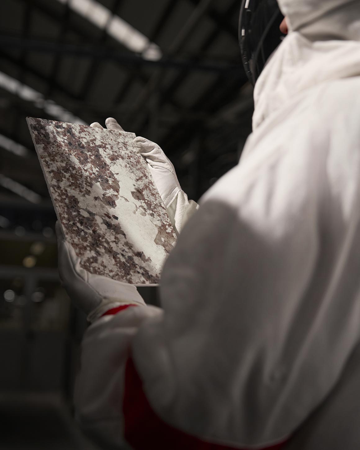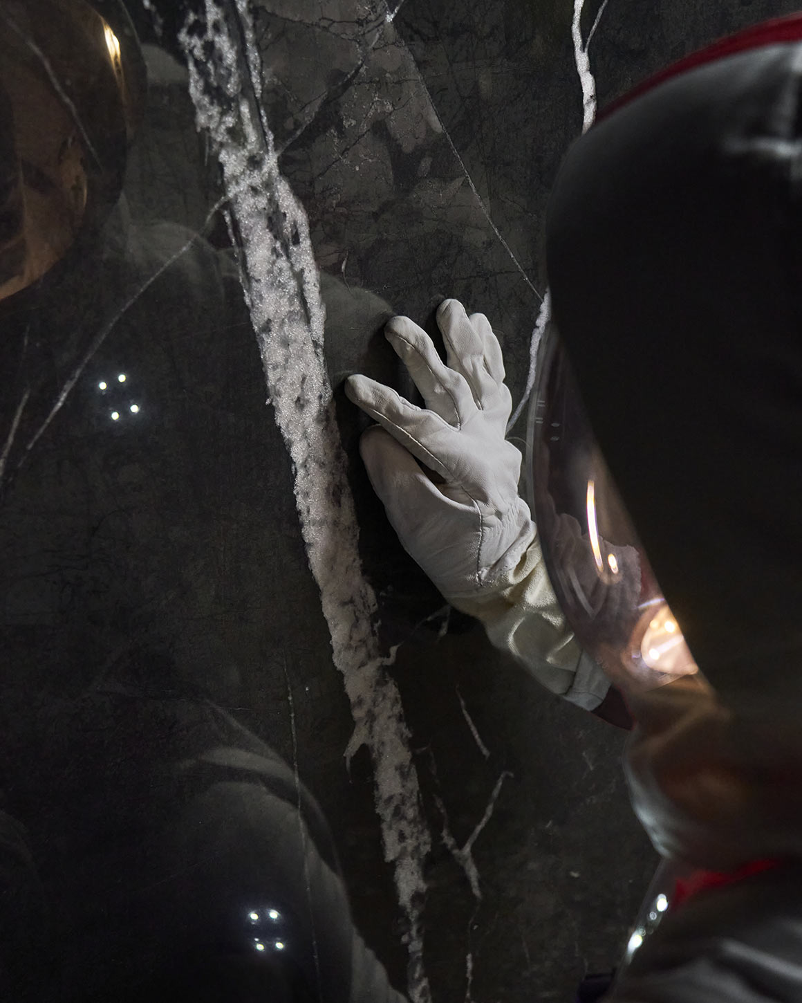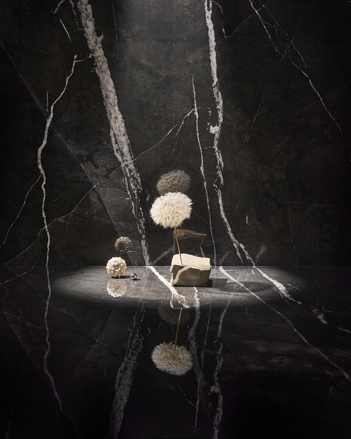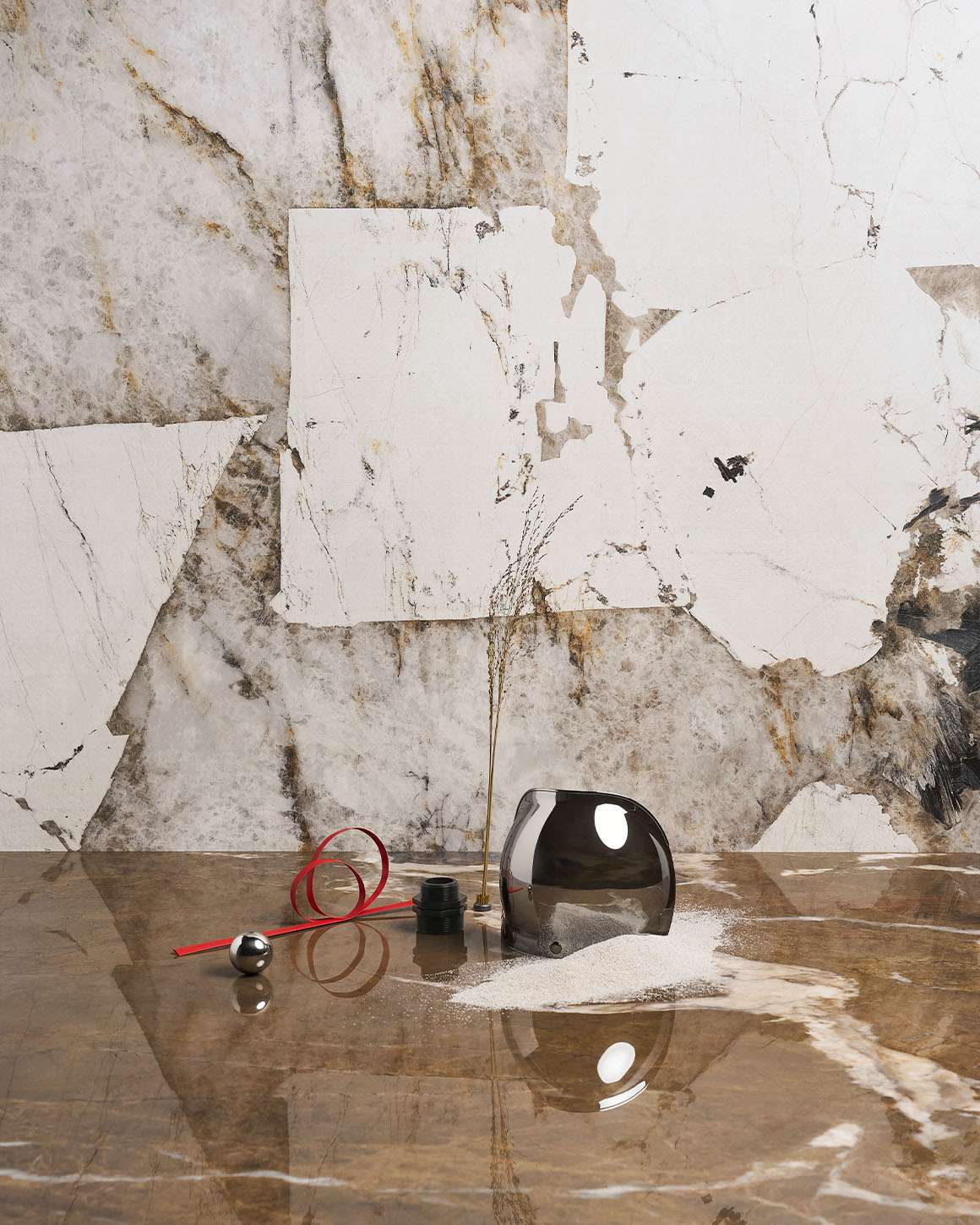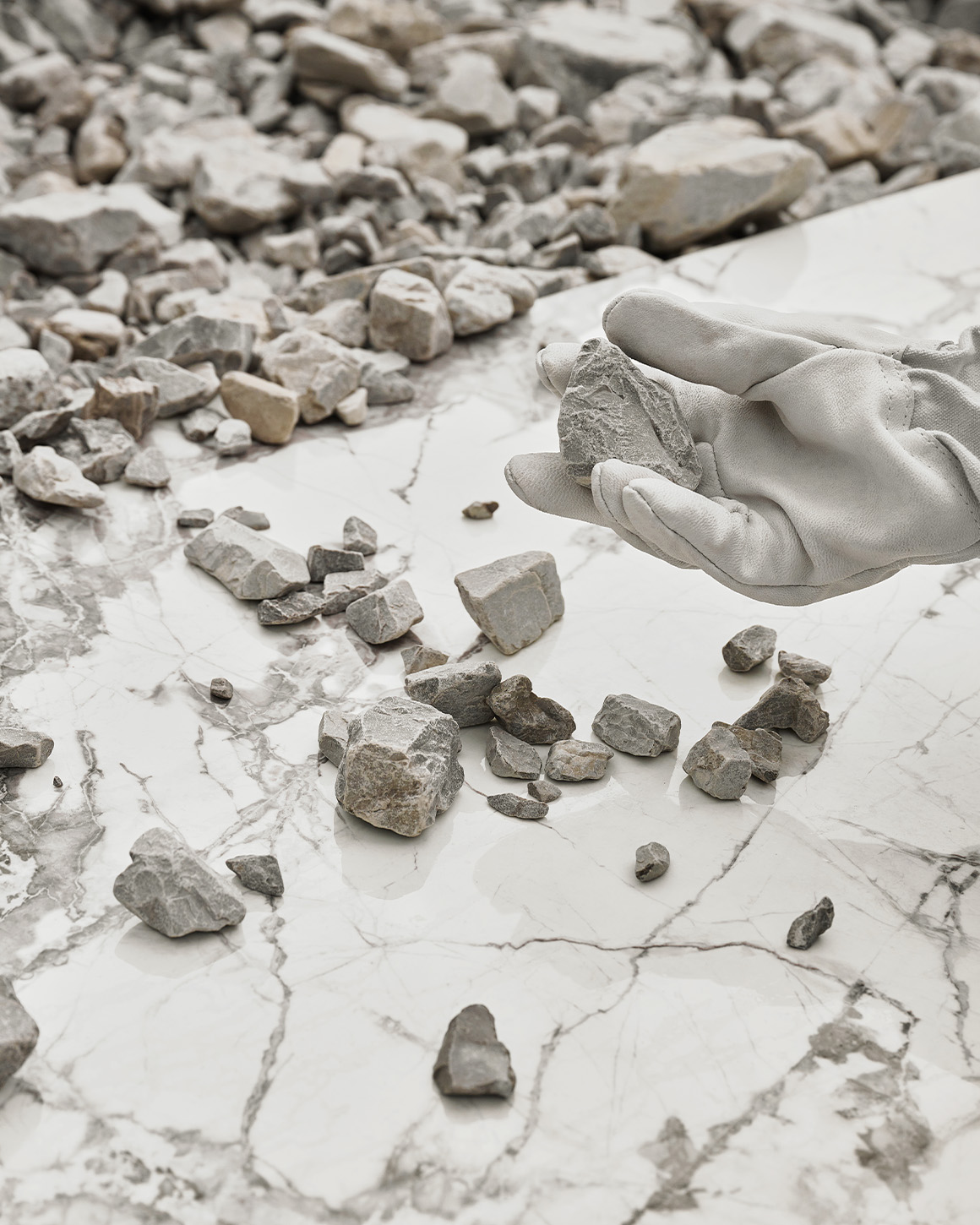 “I stop. Before me lie fragments of material that demand to be understood. This is a time for study, when every insight becomes knowledge. I run my hand over the warm and intense Crema Avorio MaxFine surface, which has a multitude of soft hues, like the traces of ancient light. I look into its properties, paying close attention to what it can teach me. Every detail draws me in more and more. Thus, the material unleashes its true potential.”