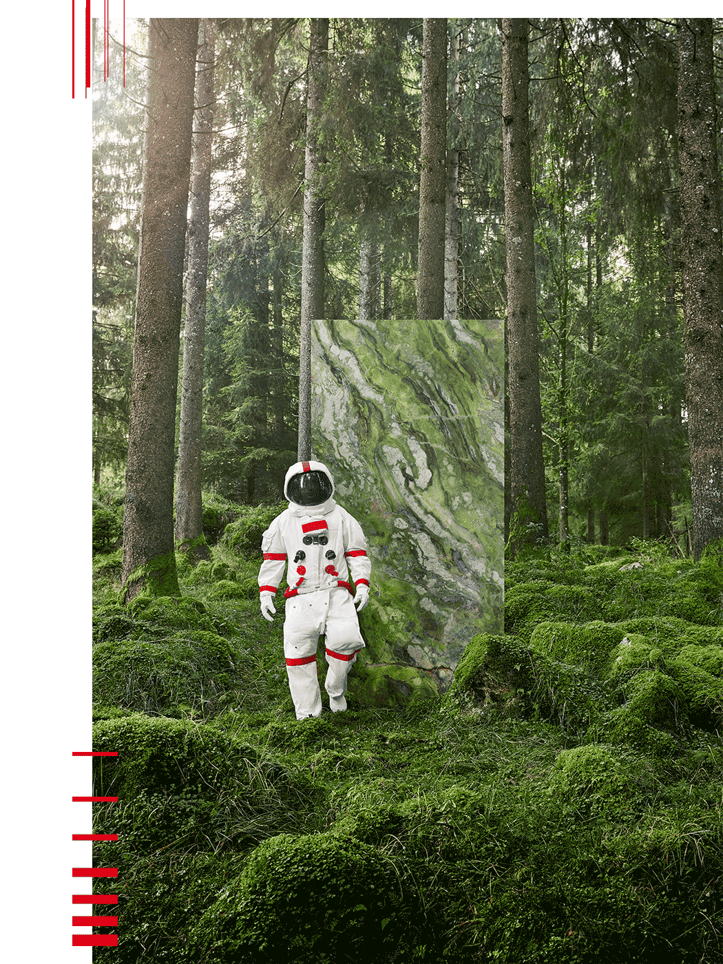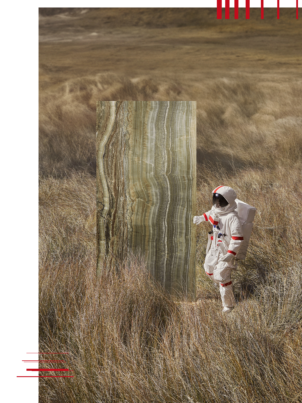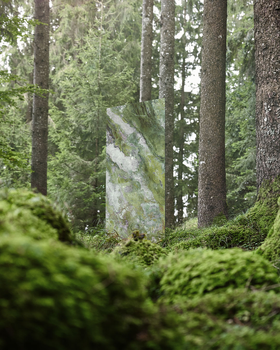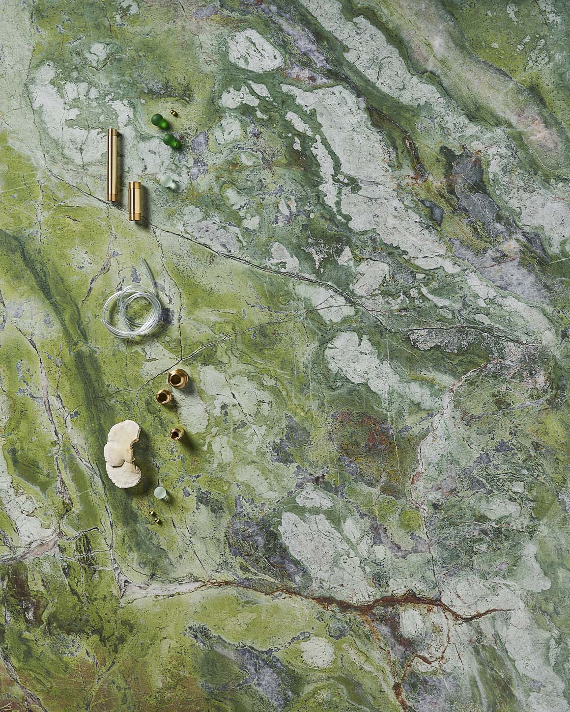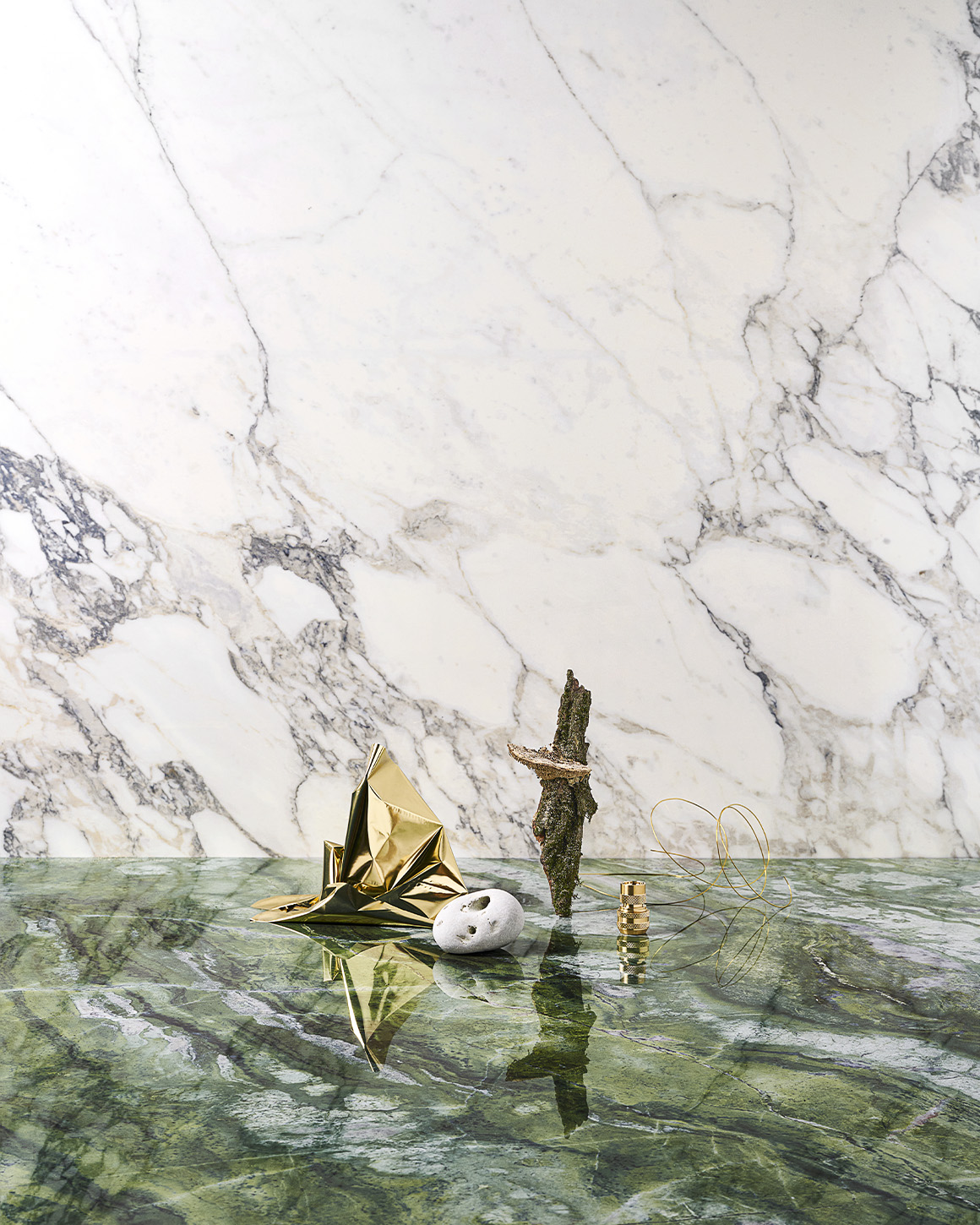 Under a clear blue sky, where clouds merge to cast light and shadow, a lush green blanket spreads out, dotted with stems that sway gracefully to the rhythm of the wind. A tranquil oasis in which silence is broken only by the sounds of birds singing and leaves rustling. In this unspoilt Garden of Eden, a precious gem appears on the horizon: Onice Verde Maxfine. Its sage green veins blend with the natural surroundings, creating a harmonious interplay of shapes and colours.
