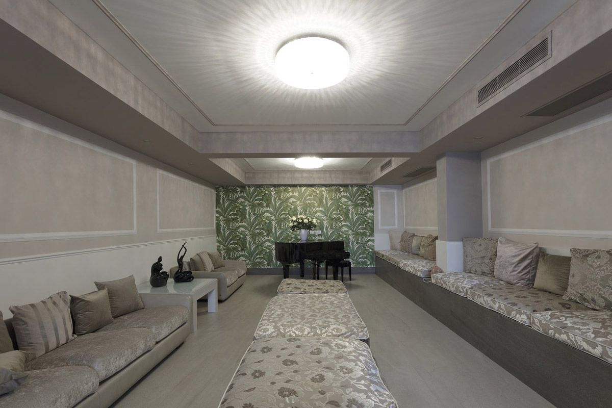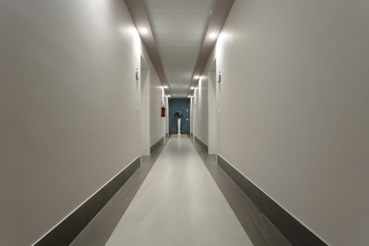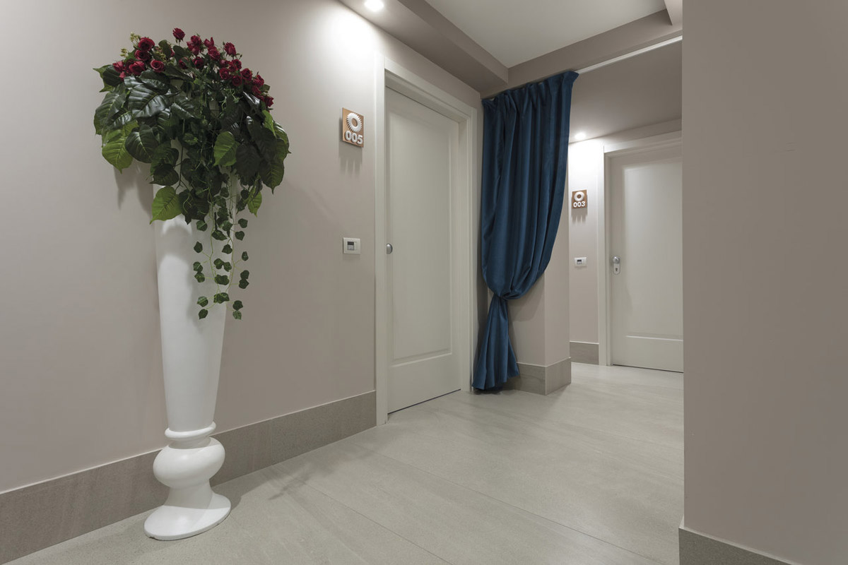 Maxfine Pietra Lavica, in the Beige color and in the 300×100 cm format, was used for the common areas of the hotel, including the lobby, along the hallways and for the stairs. Simple and elegant, it creates a pleasant and inviting ambience, visually connecting the interior with the exterior.