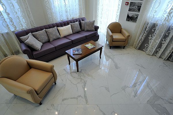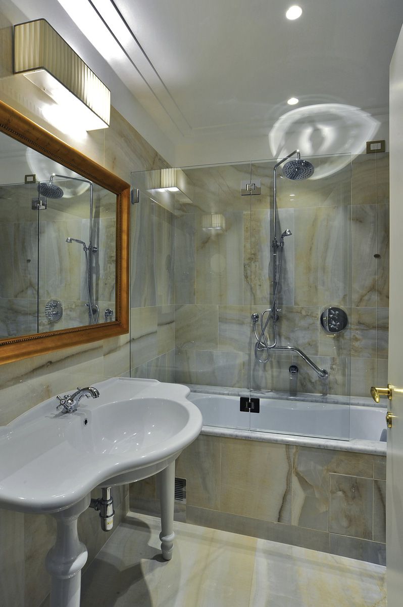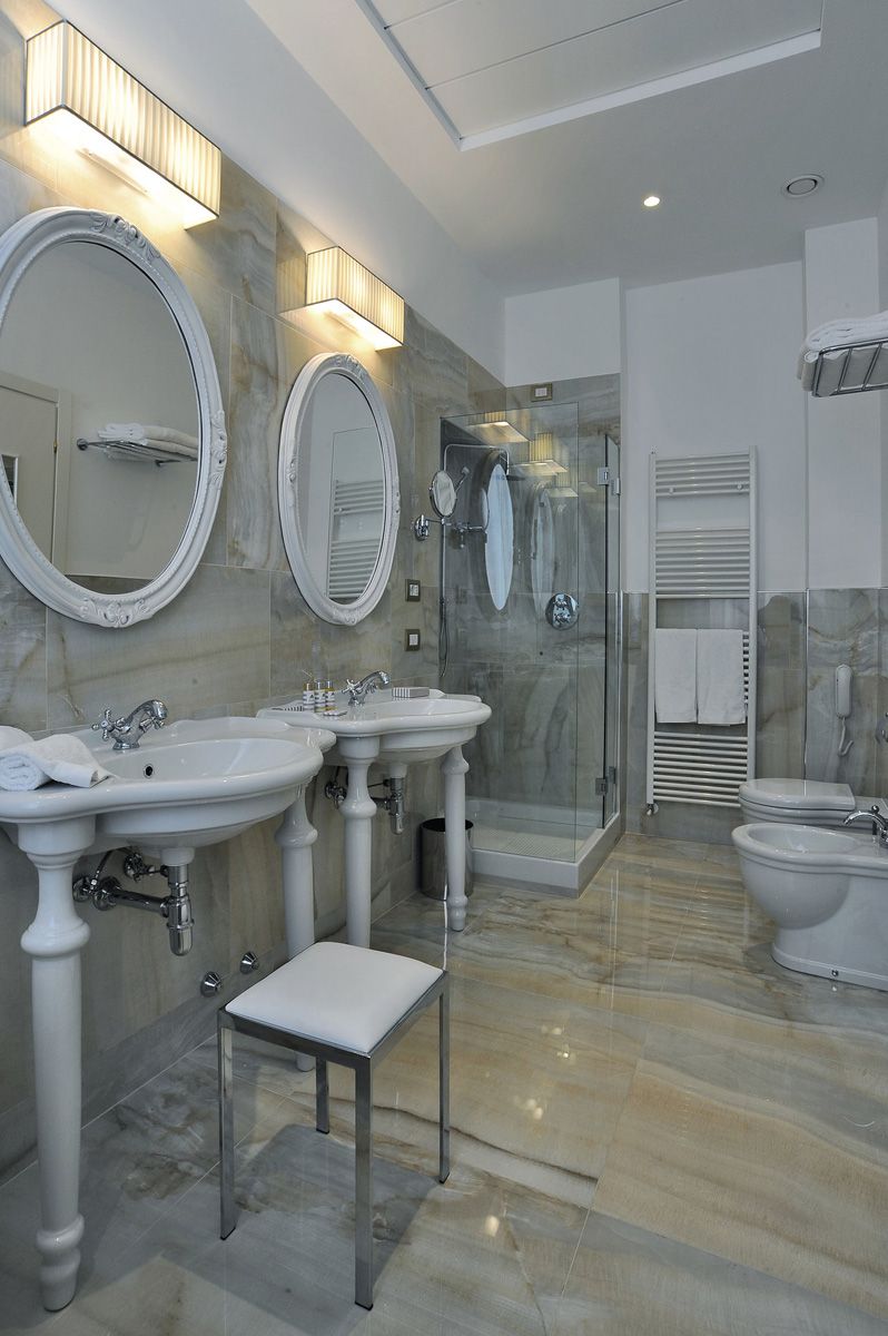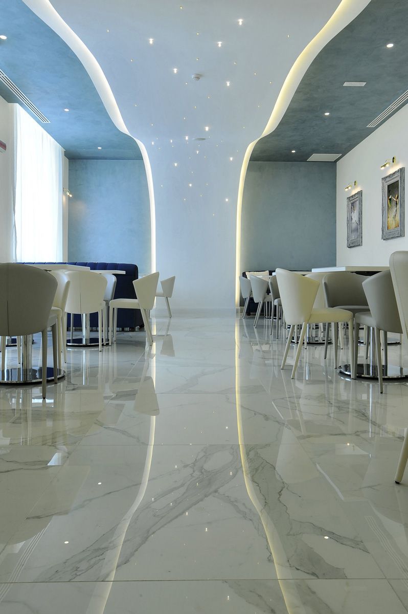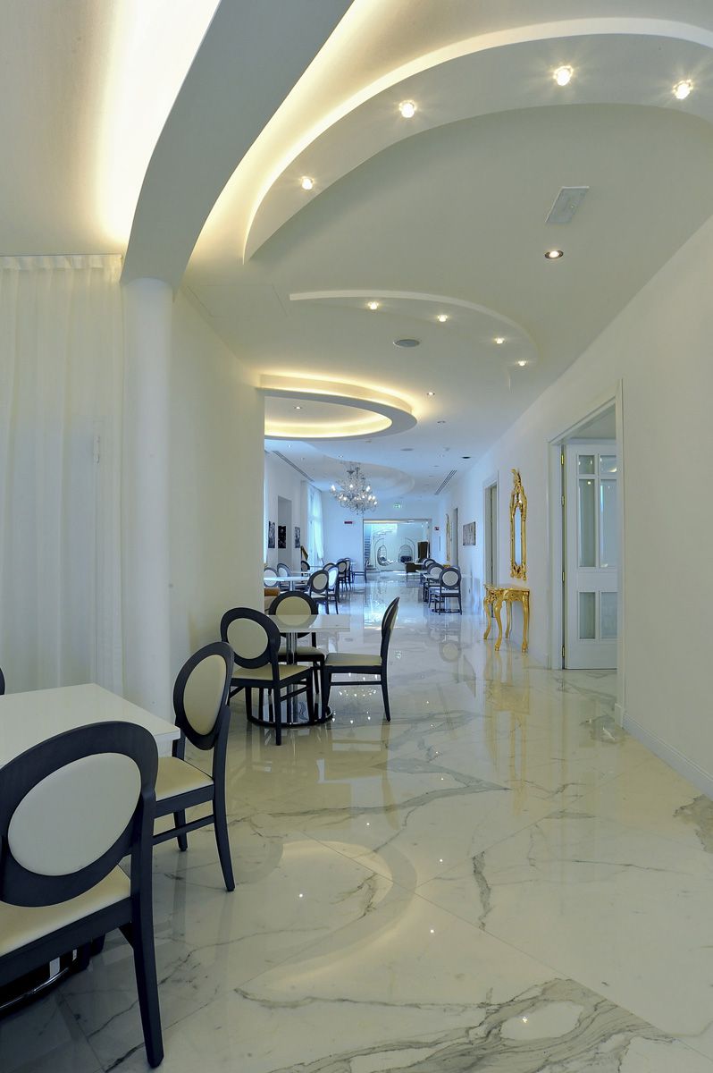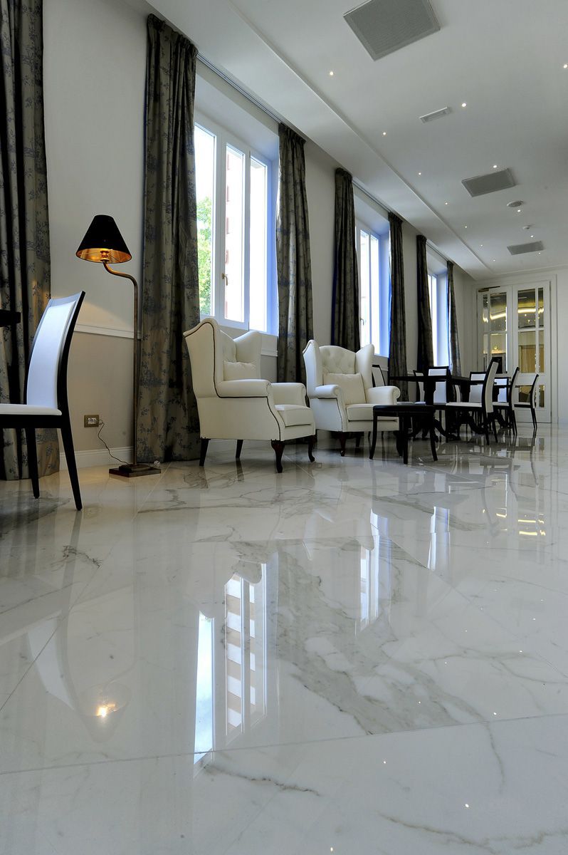 Marmi Calacatta and Onici Oro cover the walls and floors of the five-star Grand Hotel in Salsomaggiore, in the province of Parma, a member of the Italian Uappala Hotels Group.