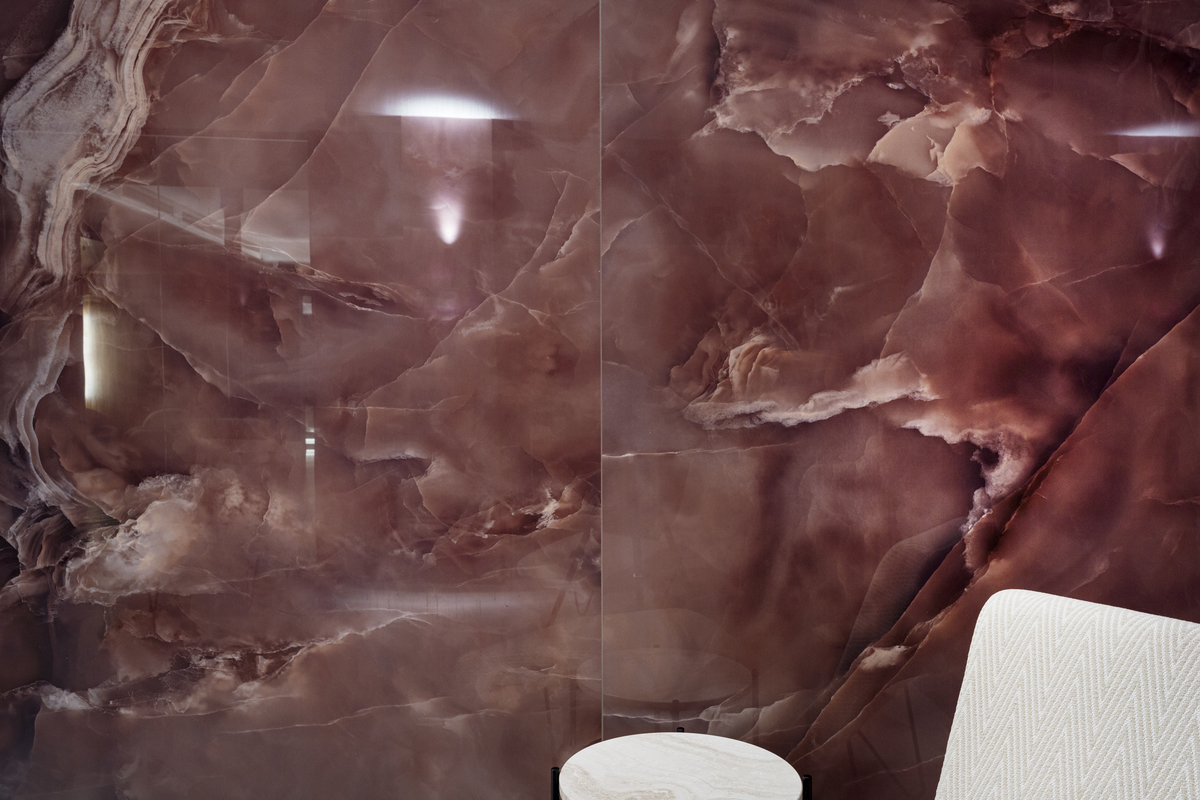 Its eclectic interior design has a nice combination of matte and polished surfaces, alternating warm and cool shades, with custom-made furnishings, some of which in contrasting styles. FMG – along with other Iris Ceramica Group brands – was chosen for the wall coverings, with different products depending on the areas of use.