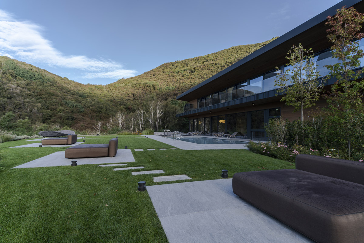A second refurbishment involved the restaurant renovation, creating a completely new image. The project, by Architect Nisi Magnoni, to increase the number of seats was carried out in just a few months in 2020. Located in an exceptionally beautiful setting, the area now features large windows which create visual continuity between the interior and the landscape designed by Sandrini Green Architecture.