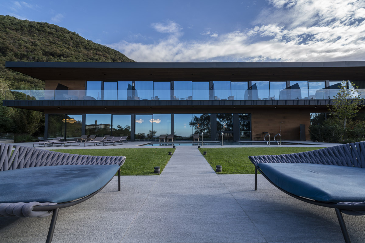 The new wing at the resort, designed by architect Francesco Adobati, is constructed adjacent to the existing building and accommodates thirteen new rooms, in addition to the previous thirty-two, plus a spa on the ground floor equipped with numerous amenities.