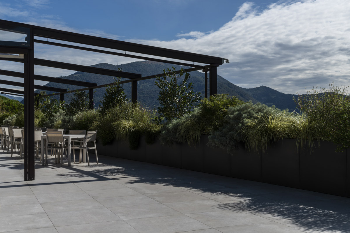 Conversely, 75 x 75cm format Walk On tiles in Sand have been installed on the terrace for weddings. With its underlying elegance, this neutral shade maintains the sense of intimacy and warmth typical of the entire ambiance.
