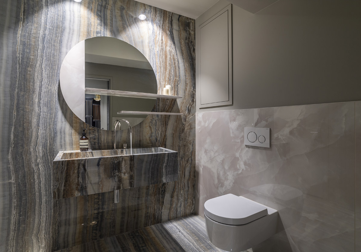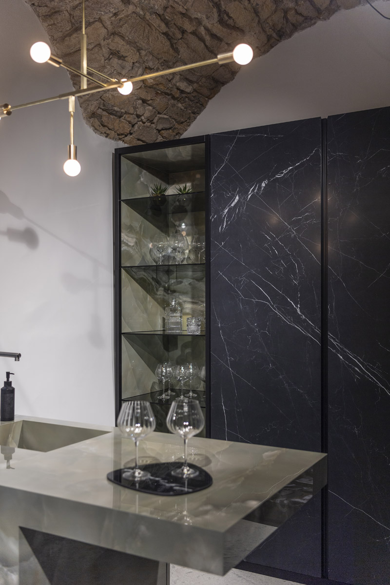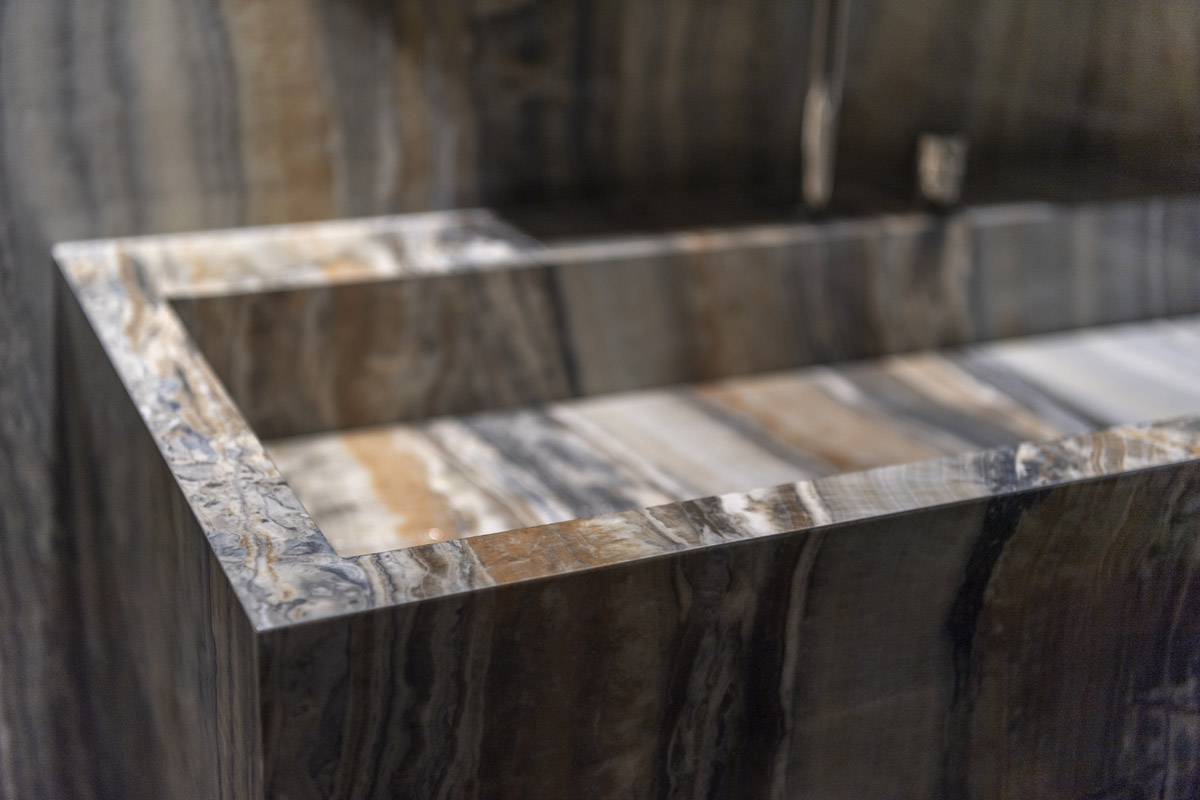 The Maxfine collections featured in the atelier range from charming Onici and the natural intensity of Citystone to elegant marble Emperador and the more recent, innovative and precious Gemstone and Agata collections, dedicated to the mineral world.