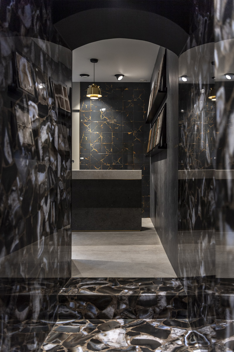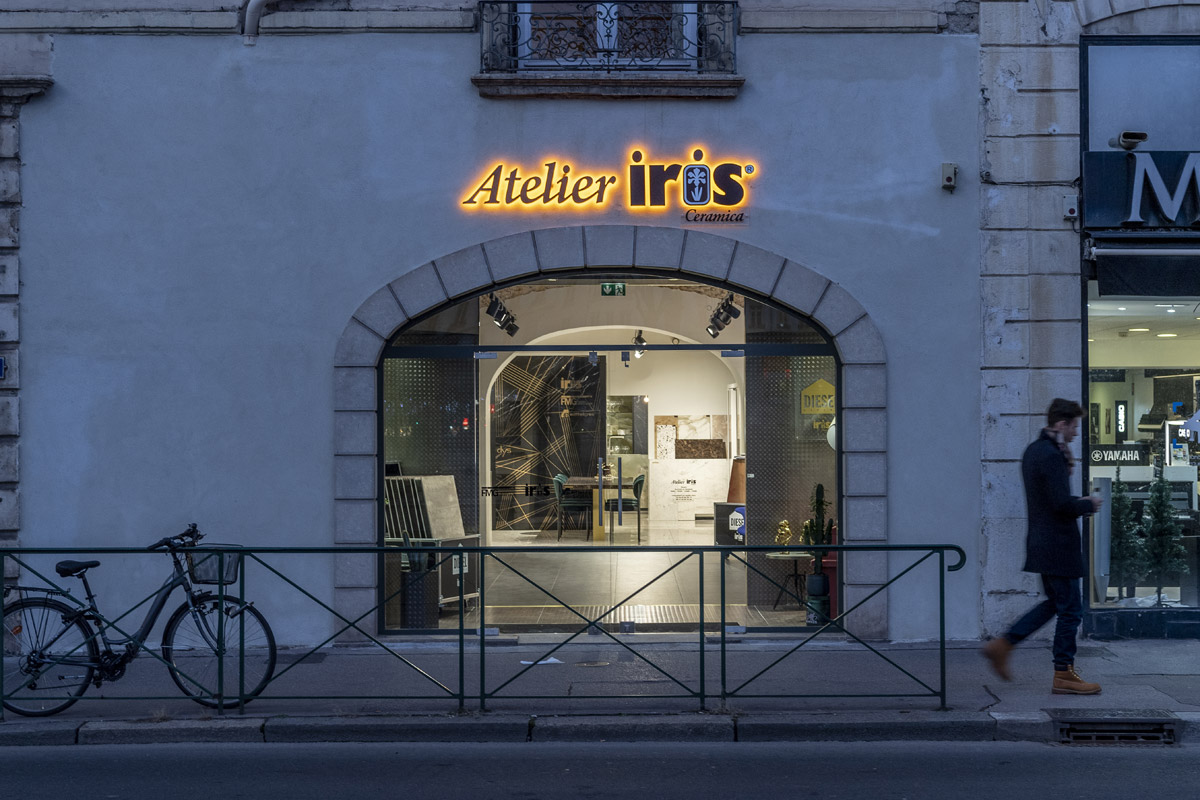 The project of the Lyon showroom by duePIU architects focuses on the communicative power of a product which, in each of its collections, expresses its nature as an exclusive and innovative tailor-made wall tile and furnishing solution.