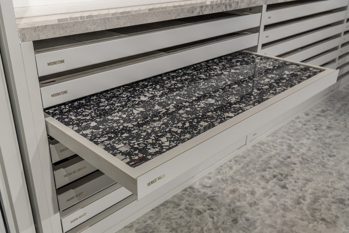This was the reason for creating an exhibition space that transcends the concept of atelier, becoming first and foremost a visual and emotional workshop, a place for experimenting, where finding the right inspiration for your spaces is easy, not only in the field of residential architecture but also in the commercial, contract and hospitality sectors.