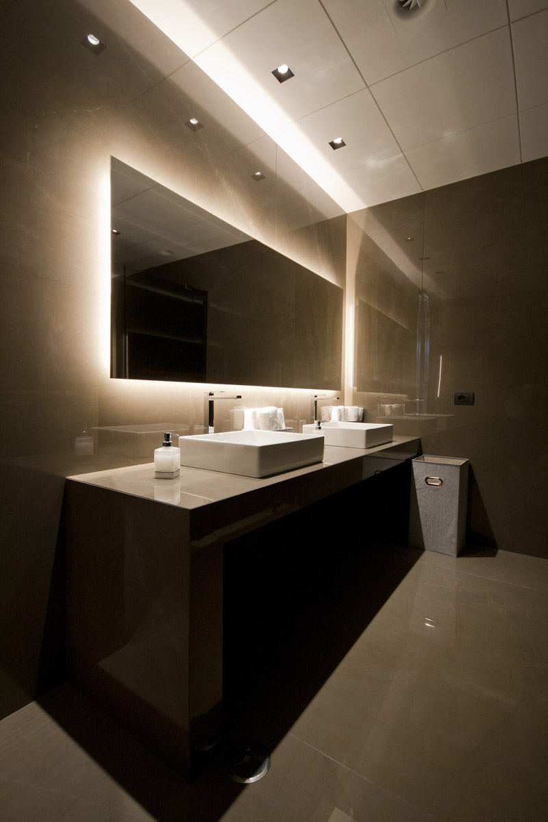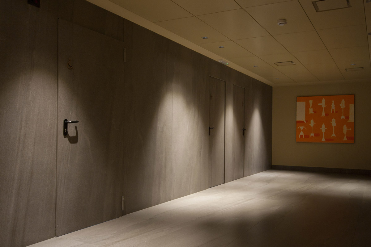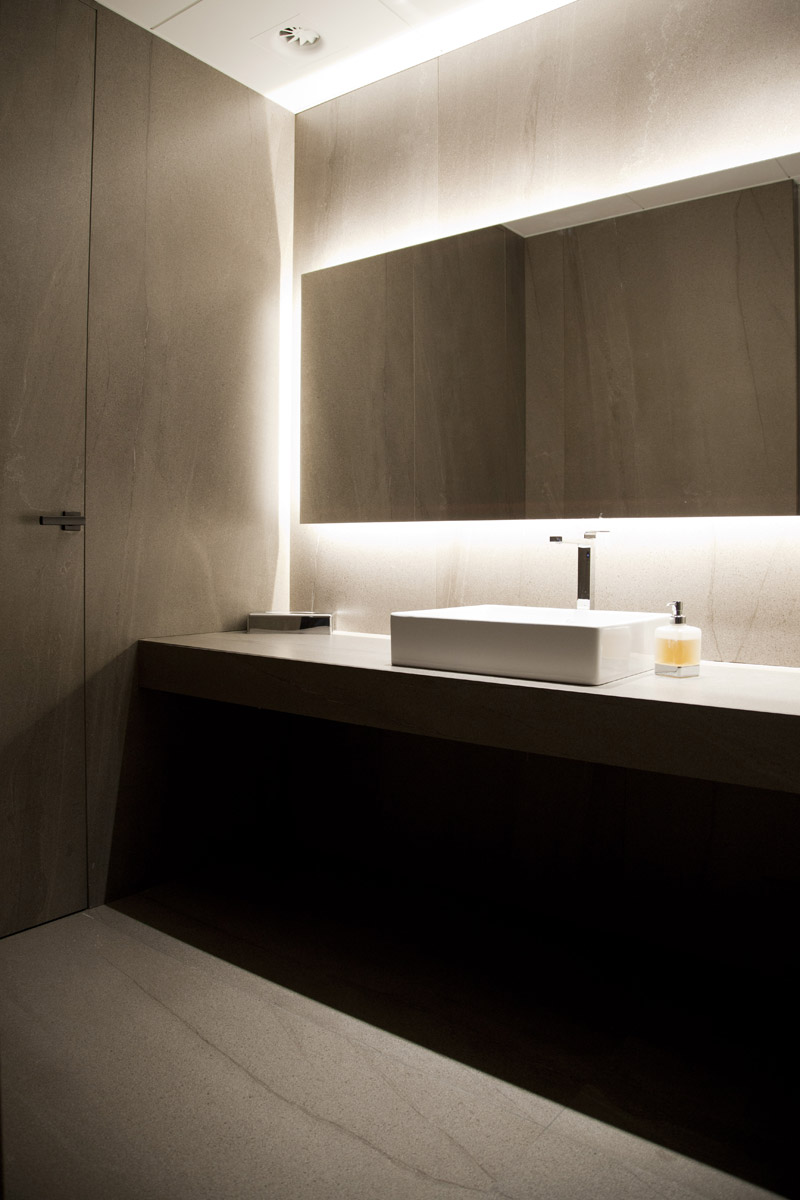 Specifically, 100 x 300cm Lavica Dark large format tiles were selected for floors and walls in first floor offices, which give a greater depth of field.