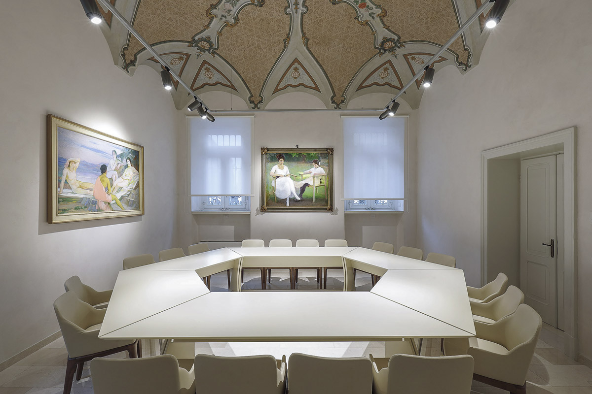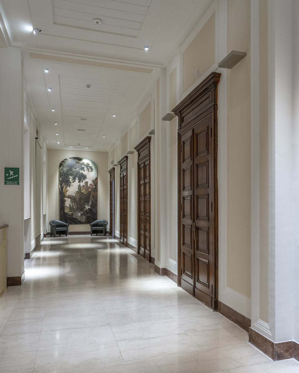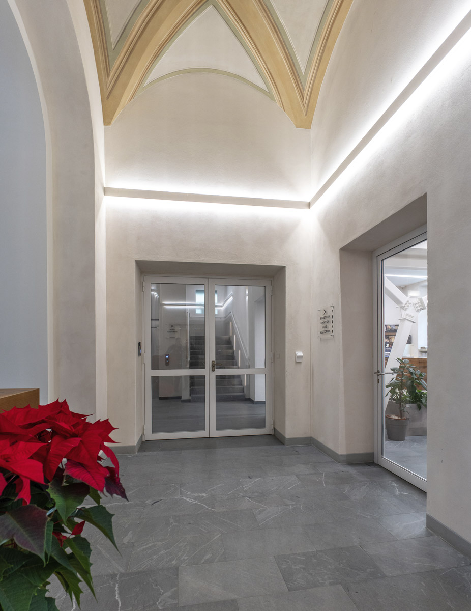 Crucial to the project was to separate the three independent sections: museum, offices and residential space. For this reason, the priority was to create new access routes and paths from the entrance of the building through a large, open porticoed area, which lead to various destinations.