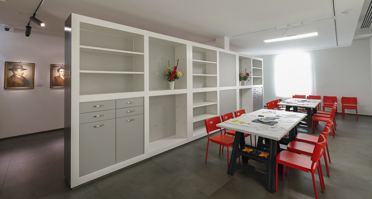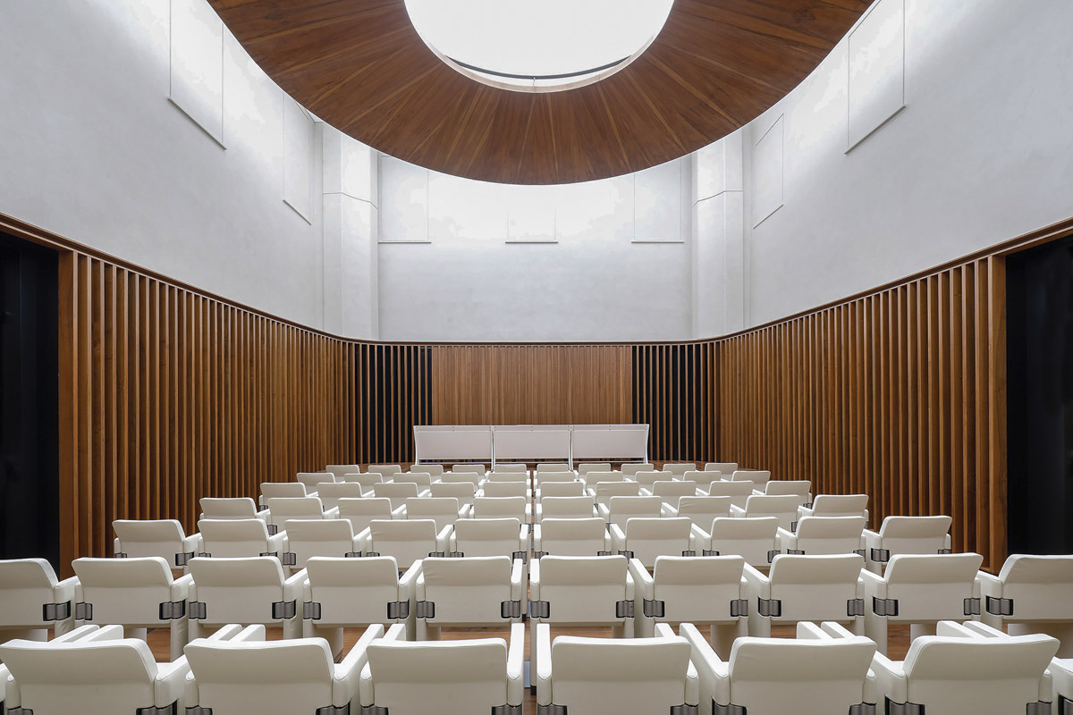 The basement, equipped with the most modern conservation plant and equipment, is used for storing works of art. On the ground floor, are the reception area, bookshops, restaurants and the museum’s main exhibition spaces for large temporary exhibitions, including a multi-function, multimedia space in the center. An auditorium, teaching rooms for communal use and a large exhibition space for permanent twentieth century collections are located on the first floor.