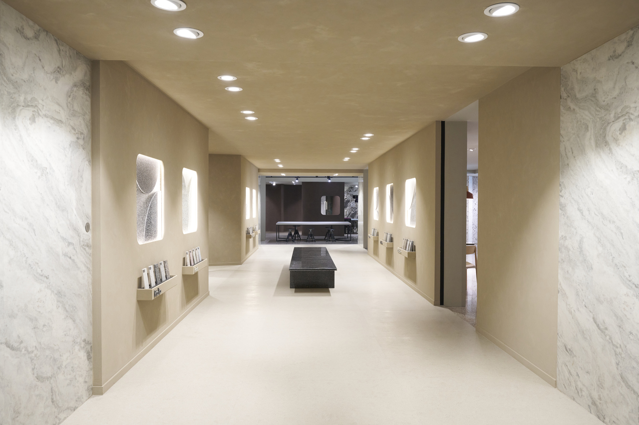 The FMG Fabbrica Marmi e Graniti showroom is more than just a display space: it’s a place where Italian ceramic excellence becomes a tangible experience, a source of inspiration, and a story of design. A setting created to welcome architects, designers, and professionals in search of new material perspectives and visual ideas, where every surface becomes a narrative.