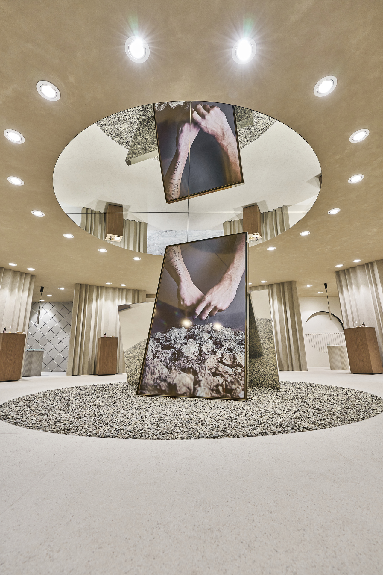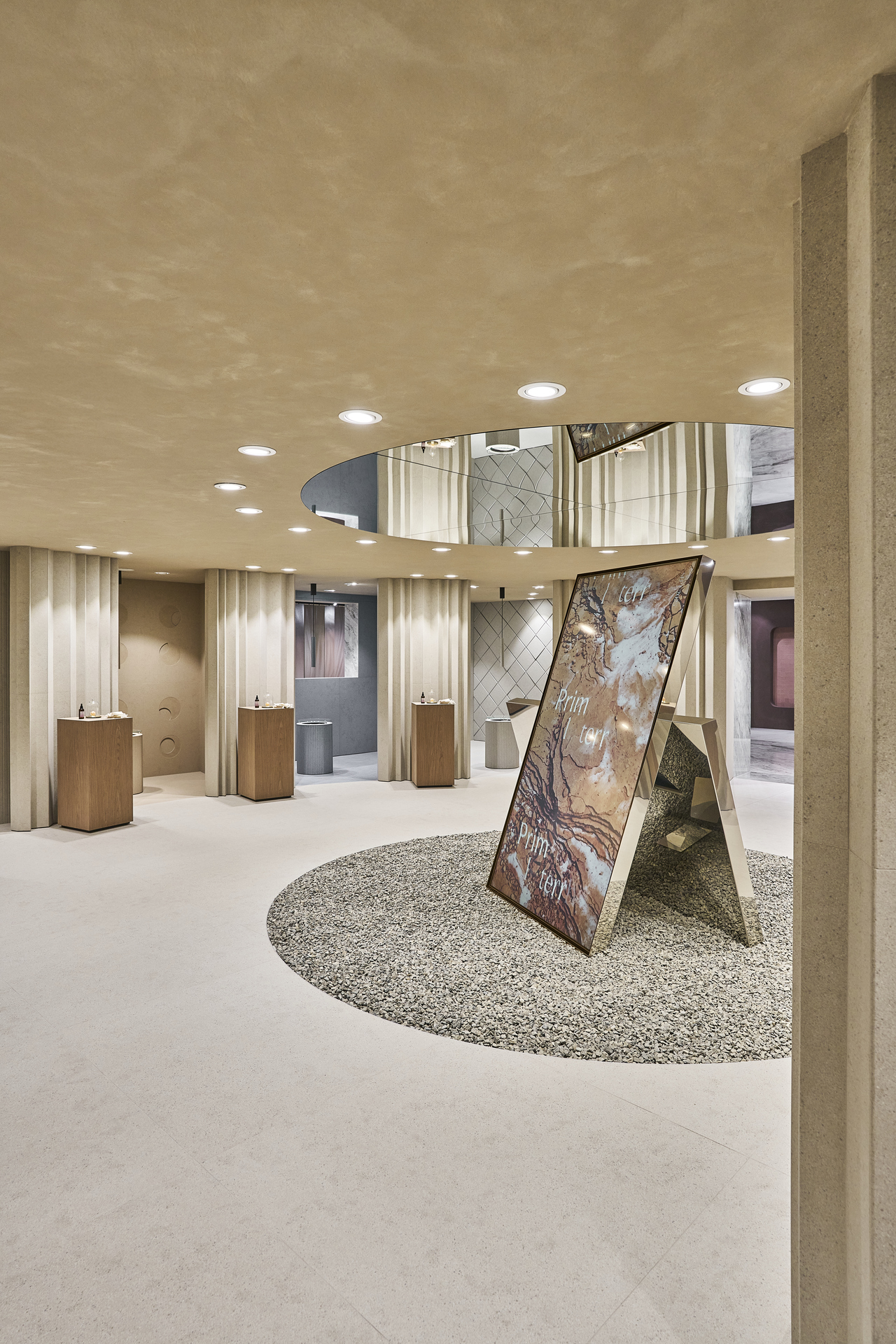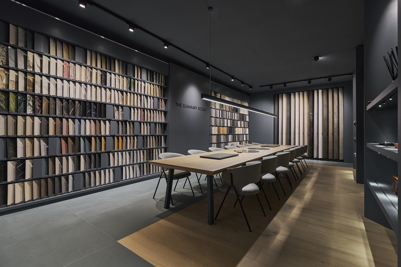 The FMG showroom is a place to explore, touch, and experience. Every detail is designed to highlight the power of ceramic material, through natural textures, sophisticated finishes, and immersive spaces meant to inspire.